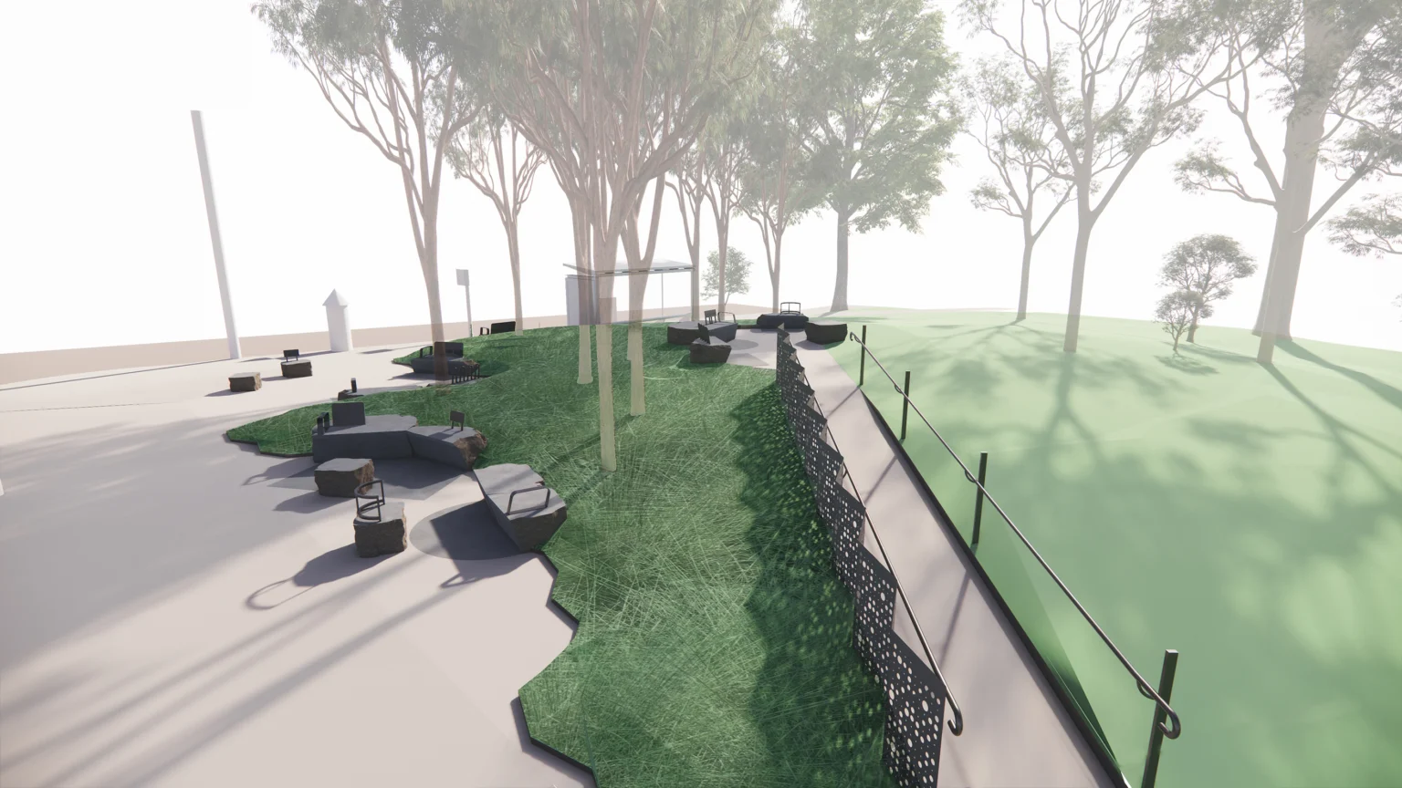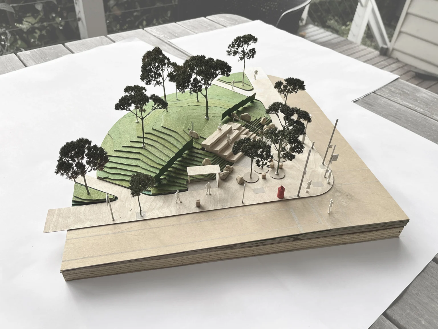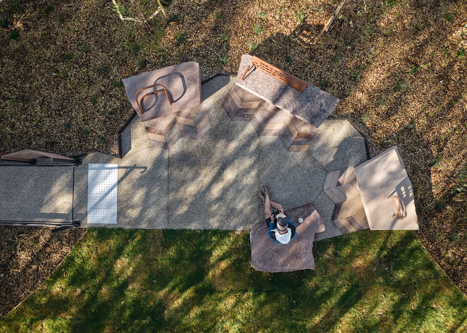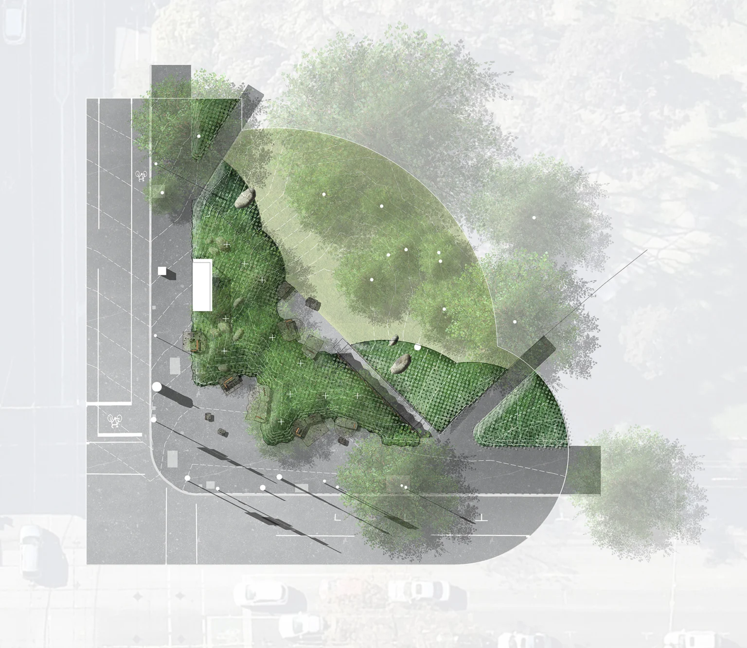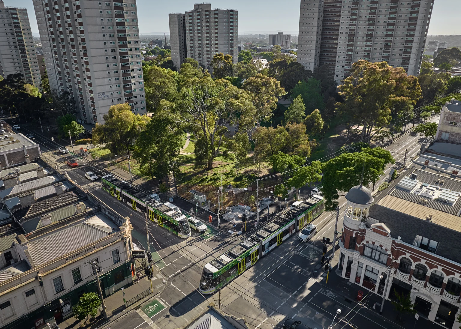 This is the diaspora of Fitzroy. The City of Yarra’s brief called for a new public space at the corner of Gertrude and Brunswick Streets. The heavy shrubs that have forever held the street apart from the Atherton Gardens Estate were removed and replaced by a new topography which spills out from Atherton Gardens to meet the footpath. A series of spaces are carved out and embedded within this new and densely planted landform. A new ramp allows access to the top of the Gardens and an uninterrupted view across the estate’s parkland – a significant space for the Aboriginal community in Melbourne, serving for decades as a meeting place, a centre for political activism, and a home for the many families and individuals who moved to the city from regional areas. The new public spaces host a diaspora of Victorian stone, cut and arranged to face significant places in the public and Aboriginal life of Fitzroy. An eccentric collection of backs and armrests imply occupation and offer an invitation to perch and observe the street and the long vista of the parklands to the east. In time, new trees will shade the footpath and the street. The ambition is that this place will endure – holding the corner, resisting future change within the Estate, and remaining a space of exchange and gathering.